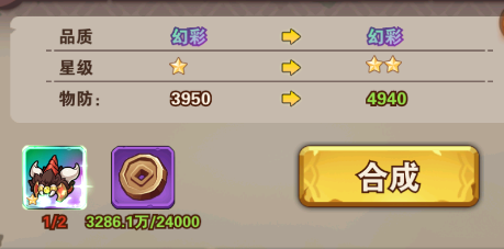 ⑵合成:相同的品質(zhì)星級(jí),2件就能合成1件高品階的;裝備可在家園系統(tǒng)打造里面煉器與合成;高品質(zhì)裝備也能通過活動(dòng)購買獲得。