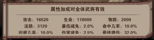 圣物:也是不需要等級(jí)就開放的,分別有橙色與紅色品質(zhì)的圣物,每個(gè)圣物的屬性都不一樣,有經(jīng)驗(yàn)加成的(如洛神賦、太平要術(shù))、有武將提示傷害(諸葛連弩)、有減傷的(昊天塔)等等;每個(gè)圣物也有不一樣的被動(dòng)屬性,也有圣物共鳴加成;另外圣物屬性也是對全體武將生效;