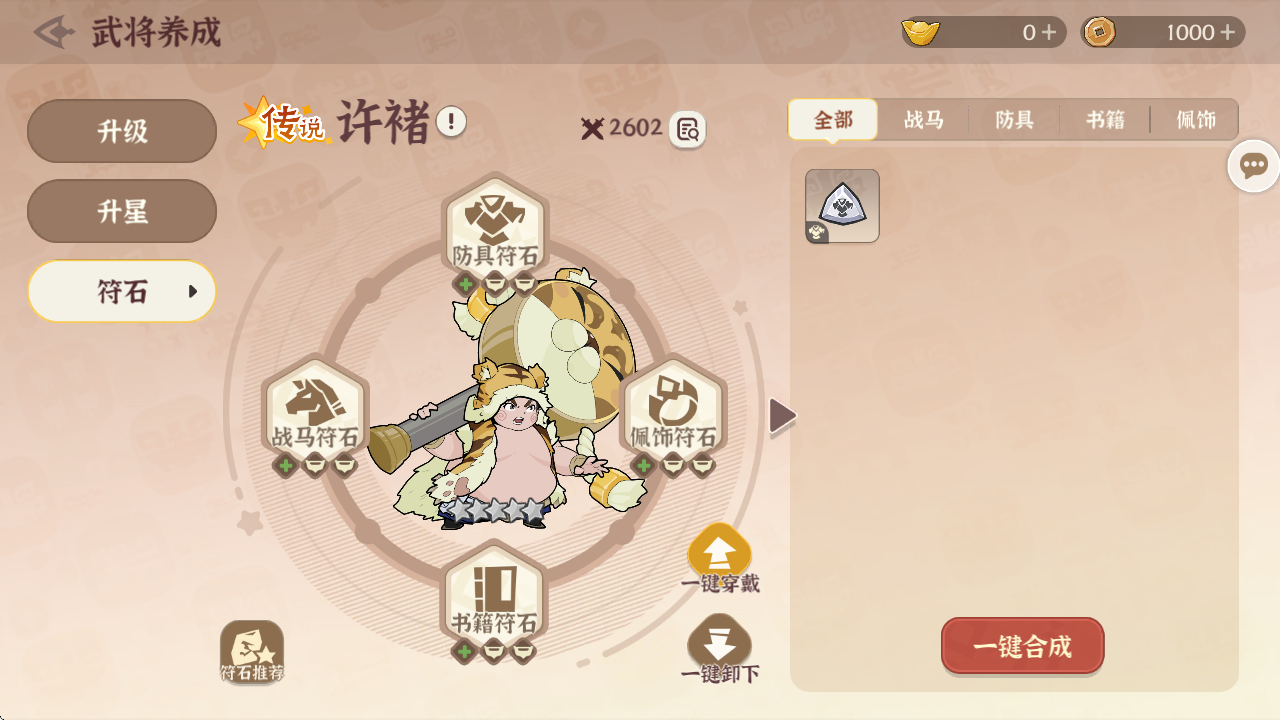每個武將都可裝備4種符石,不同部位的符石能夠帶來不同的屬性加成,從基礎(chǔ)屬性到特定陣營或特殊機制屬性,稀有度越高的符石,屬性也越稀有和強力。