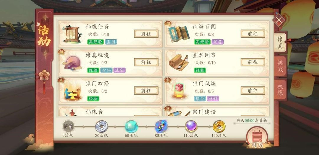 修真部分的活動難度較低,任務需要花費的時間較少,獎勵也很豐厚,屬于每日必做的活動類型。