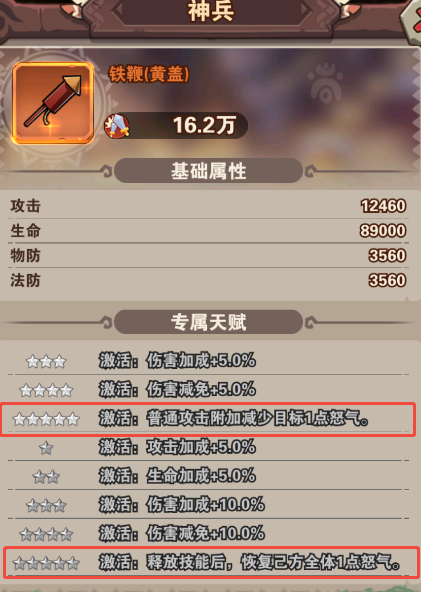 神兵:對(duì)能量(怒氣)少的額外造成傷害(配合減怒武將、神器鎮(zhèn)魂幡減怒可以實(shí)現(xiàn))