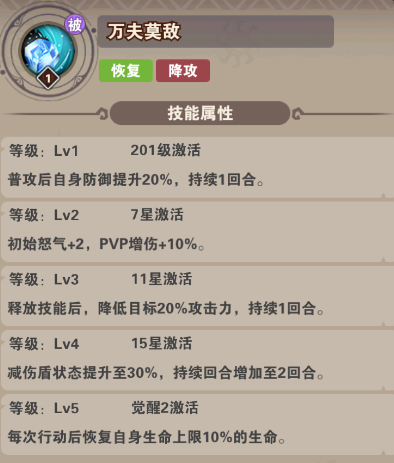 技能:全體aoe技能傷害,被動(dòng)全體減怒并減防