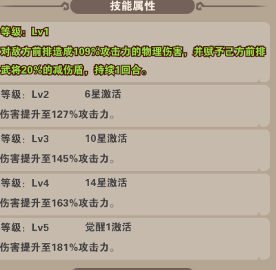 技能:對(duì)敵方前排造成傷害,并為已方前排賦予減傷盾
