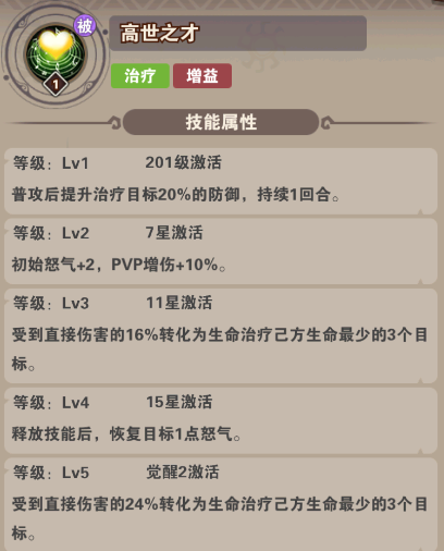 技能:全體治療,賦予后排減傷護(hù)盾,被動(dòng)敵方全體減怒