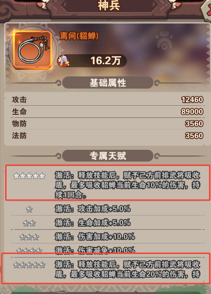 神兵:釋放技能后為前排武將賦予護(hù)盾