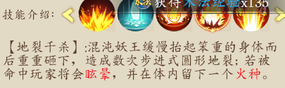 注:這個技能可以說不算是BOSS技能,說是福利更貼切一點(diǎn),場地中會刷新4-5個小魔兵,玩家擊殺后會有個光團(tuán),可以吃掉的,吃完后會有個額外的技能【如上圖顯示】,技能圖片解釋的比較模糊,直白一點(diǎn),在BOSS飛天落地后,此技能才可對BOSS釋放,削弱BOSS熱量值,三層意思,1.削弱BOSS技能一所獲得能量值。2.降低玩家所受技能傷害。3.降低灼傷狀態(tài)的增幅。
