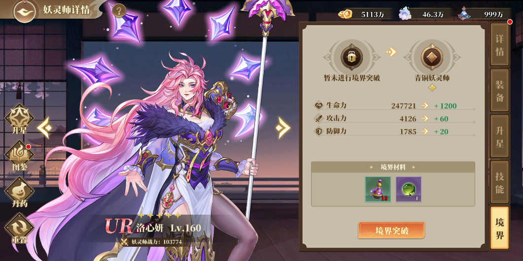 玩家可以通過合理利用資源對重要的角色進行境界升級,當然資源足夠的情況下可以隨意升級自己想升級的角色。