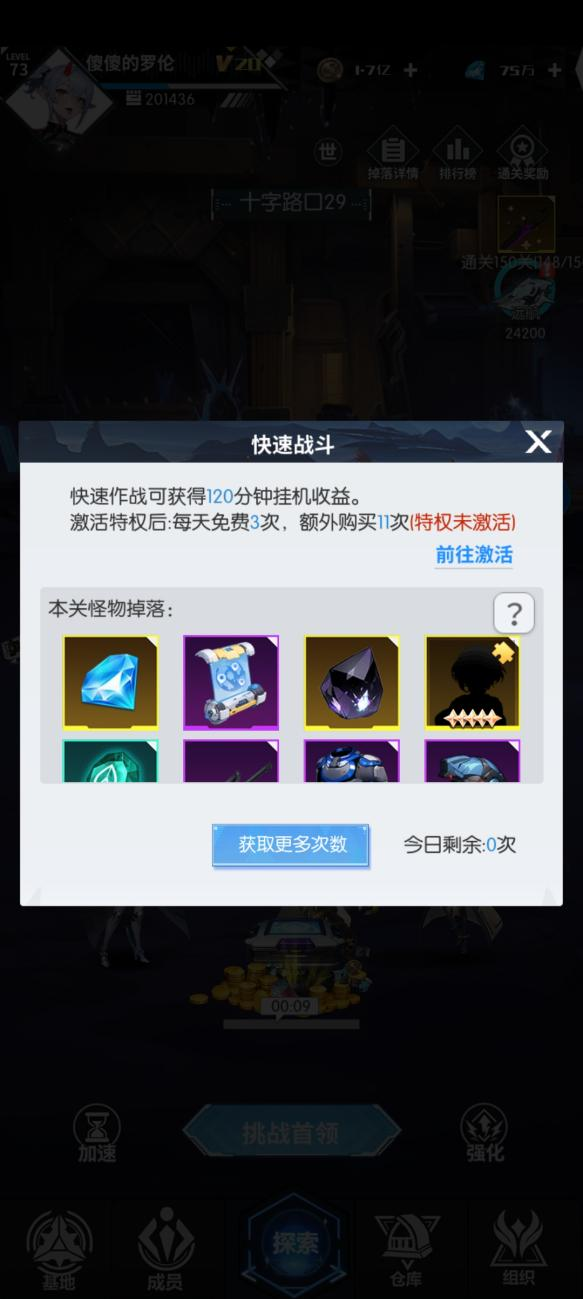 通過精神力點數(shù)提升冒險家等級,通過探索通關(guān)主線關(guān)卡、掛機兩個方式獲取,所以前期盡可能去通關(guān)主線關(guān)卡,掛機除了時間掛機還可點擊快速戰(zhàn)斗獲取120分鐘掛機效益,開通特權(quán)可增加次數(shù);