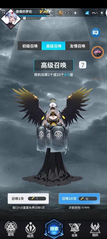 角色招募分為初級召喚、高級召喚和友情召喚。初級召喚及友情召喚有較小概率獲取普通三系(天、地、人)和普通神魔五星英雄,高級召喚有較高概率獲取普通三系(天、地、人)和普通神魔五星英雄,友情召喚需要冒險家添加好友并相互增送友情點后方可使用。