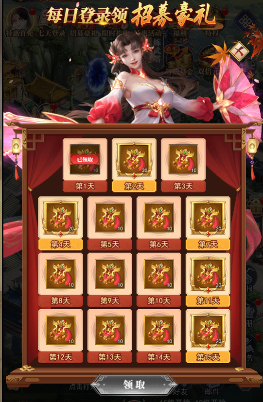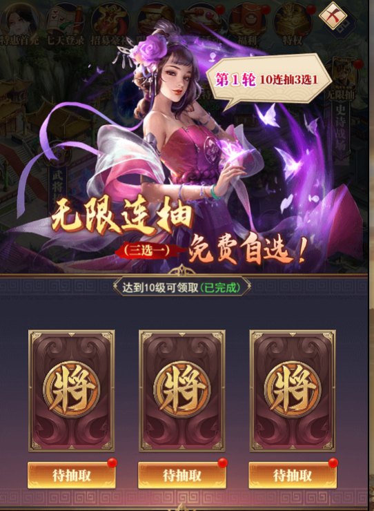 7、等級禮包:完成任務三國武將自選等大量豪禮,助您快人一步