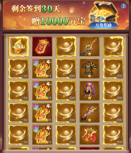 3、每日簽到和每月簽到領取大量元寶和英雄、招募令等豪禮