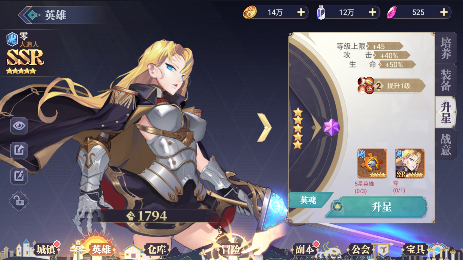 R英雄只能升到5星、SR只能升到9星、SSR能升到15星;英雄分血裔、學(xué)院、精靈、神族、魔族,升星要消耗英雄卡,同英雄就是本體,其他英雄就是狗糧,三系英雄升星都消耗本系的英雄,神魔除本體外可以全部吃5系英雄狗糧。