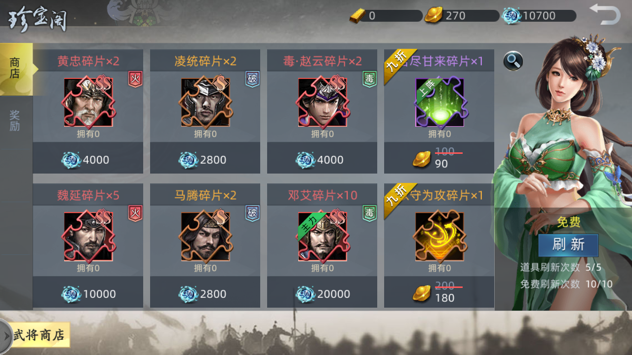 2、珍寶閣中武將商店一定要刷新要兌換,優(yōu)先買主力武將,其次緣分武將。