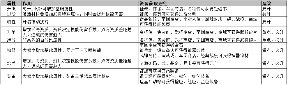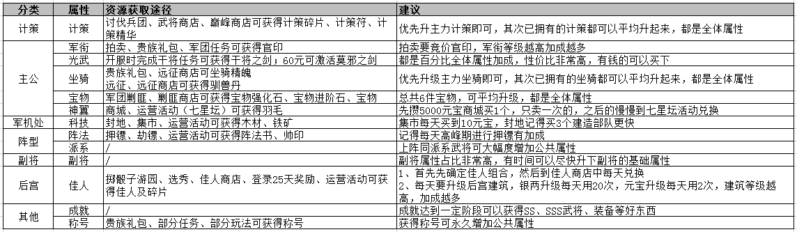 可以通過以下途徑提升公共屬性,即全體武將屬性獲得提升,小編分別列出對應(yīng)系統(tǒng)及資源產(chǎn)出途徑僅供參考: