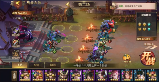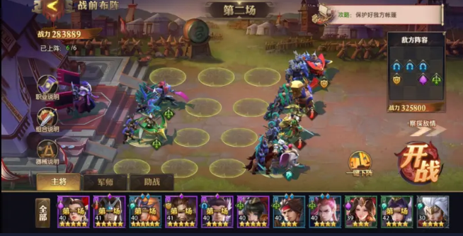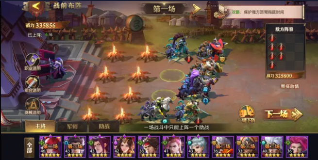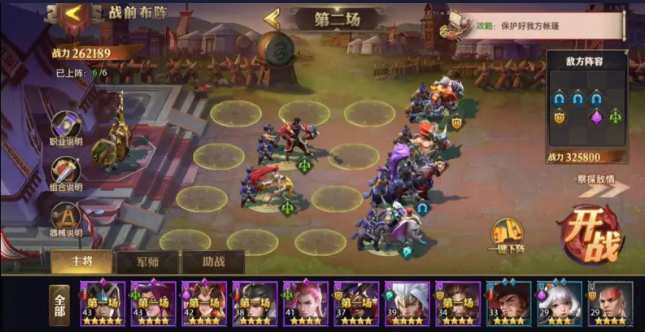 第三關(guān)敵方陣容比較單一己方也不要選什么花里胡哨的,分配戰(zhàn)力、上陣傳統(tǒng)陣容即可,要注意的是面對(duì)敵方多輕騎陣容時(shí),要保護(hù)好己方輸出主將,保證雙C安全,陣容才能夠穩(wěn)定。