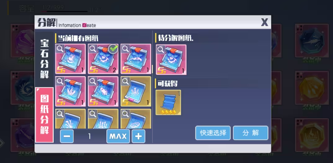 寶石/圖紙分解功能:在背包里的寶石界面里進(jìn)行分解操作,換取對(duì)應(yīng)材料