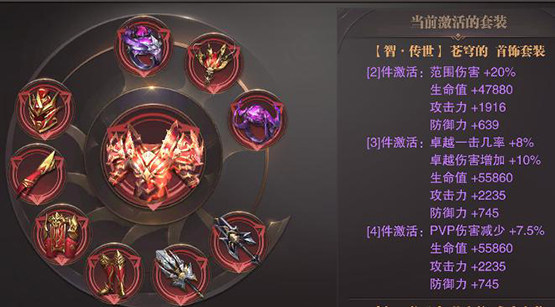 所有套裝中,三角形的套裝加攻擊力和戰(zhàn)力最高,屬性要看自己職業(yè)的需求選擇,但三角形套裝很耗材,各位量力而行。