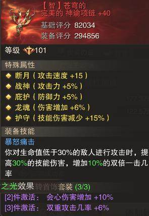暴怒痛擊:提高30%技能傷害,增加10%雙倍一擊率,說是痛擊實至名歸。
